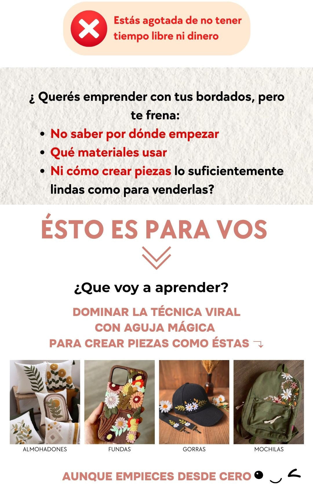 Tranquila,el material está pensado para acompañarte desde cero, paso a paso. Nada de técnicas complicadas ni explicaciones difíciles. Si alguna vez te sentiste frustrada aprendiendo sola… acá no te va a pasar.
