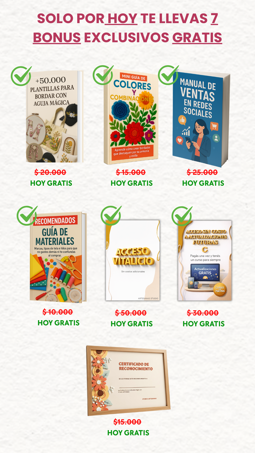 Bordado Mágico desde cero +Videos tutoriales +50.000 Plantillas + 7 Bonus de Regalo