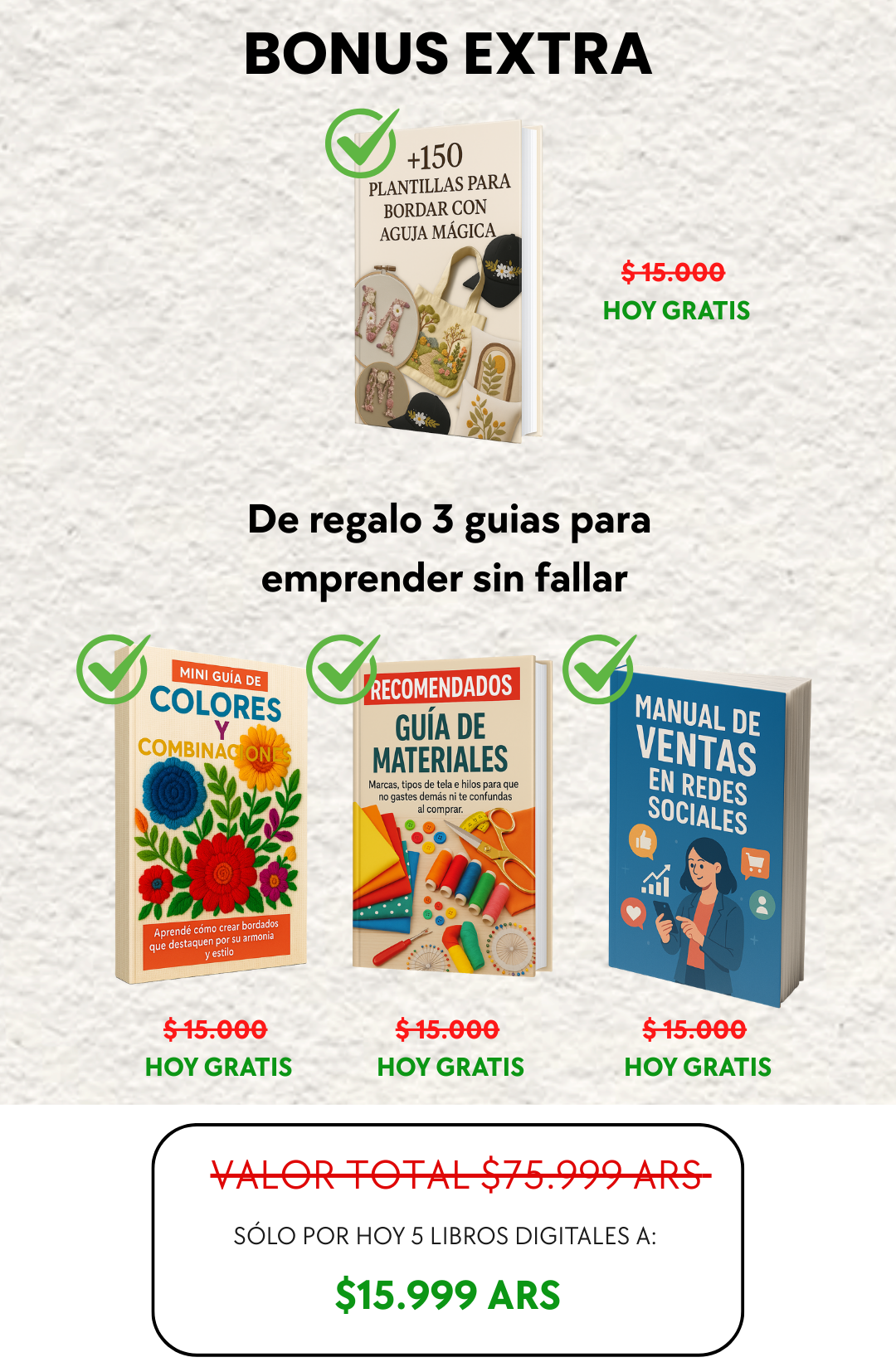Bordado Mágico desde cero +150 Plantillas + 4 Libros De Regalo